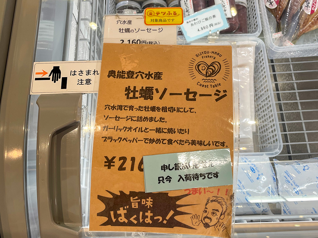 個人的には奥能登穴水産の「牡蠣ソーセージ」が食べたかったのですが、やはり人気のため入荷待ちでした……