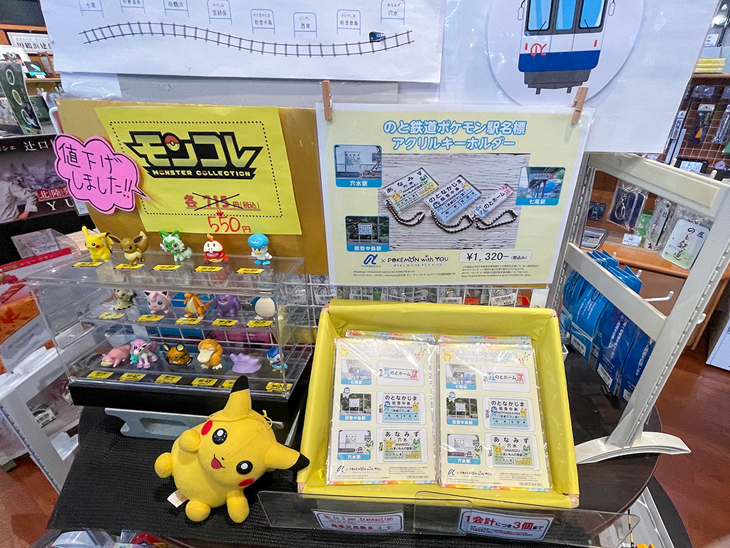 「道の駅あなみず」にはのと鉄道ポケモン駅名標アクリルキーホルダーやモンコレがありました〜
