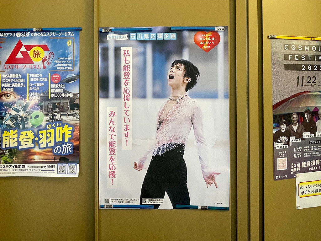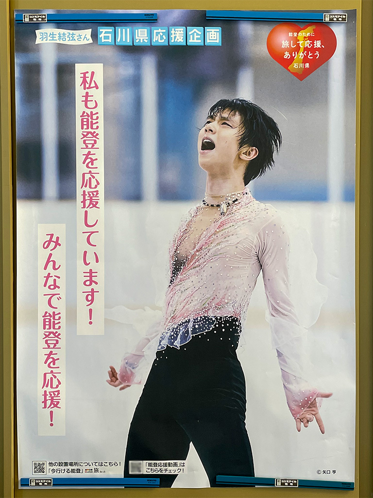 石川県内各地に羽生君のポスターが掲示されています