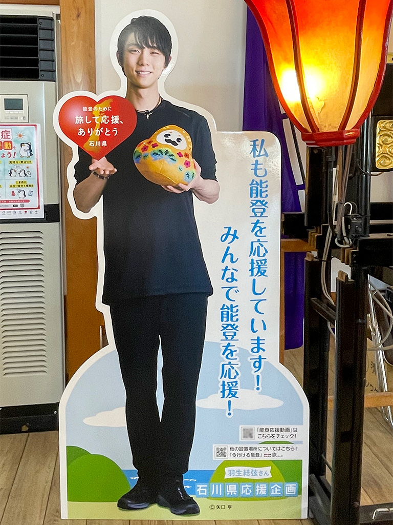 2025年2月1日から2026年3月31日まで、石川県内の観光施設など約40か所に羽生結弦選手の等身大パネルやポスターが設置されています