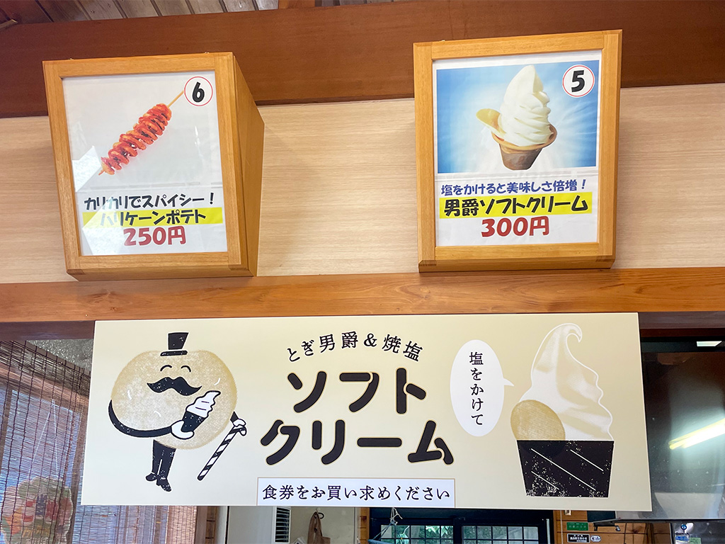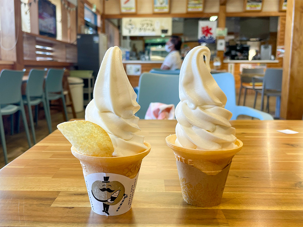 「男爵ソフトクリーム」は、蒸してペースト状にした男爵いもが練り込まれた「道の駅とぎ海街道」の名物でもあります