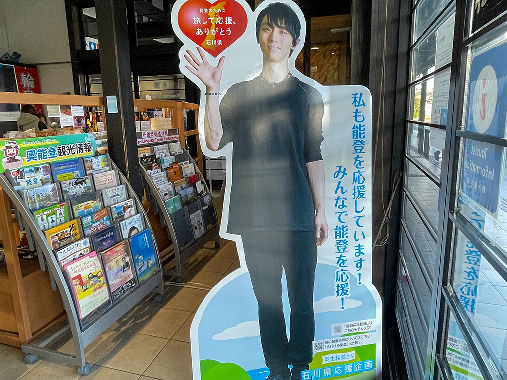 「道の駅輪島 ふらっと訪夢」の羽生くんの石川県応援企画パネルは「わじま観光案内センター」内に設置されています