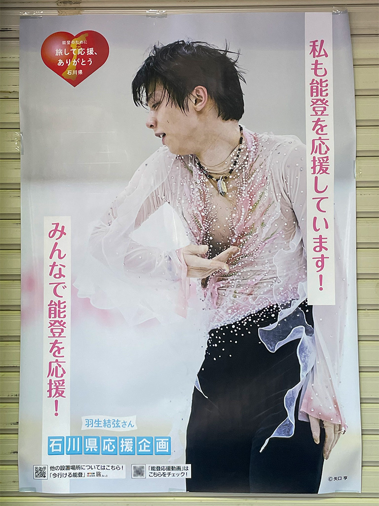 能登半島の温泉所、和倉温泉駅・観光案内所にも羽生くんの石川県応援企画ポスターが掲示されていますよ♪