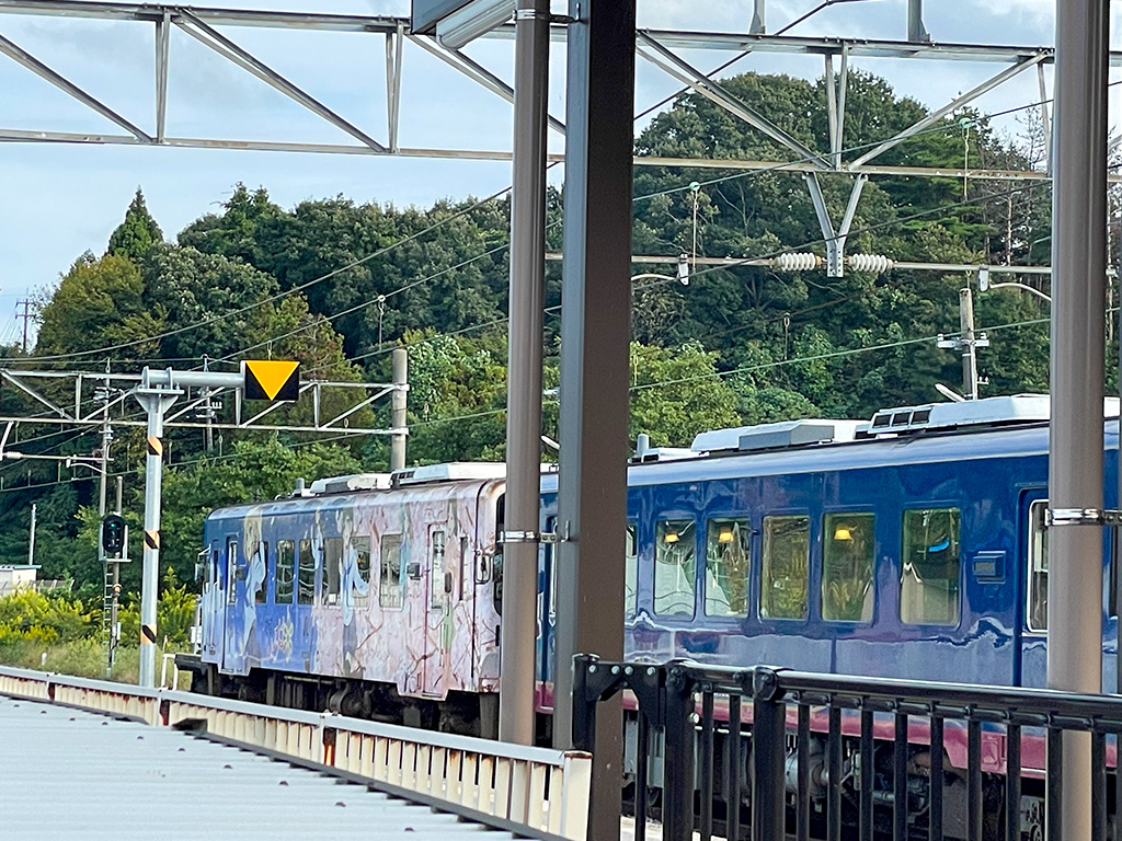 和倉温泉駅に乗り入れている「のと鉄道」には、アニメ『花咲くいろは』のキャラクターが描かれたコラボ列車も走っています