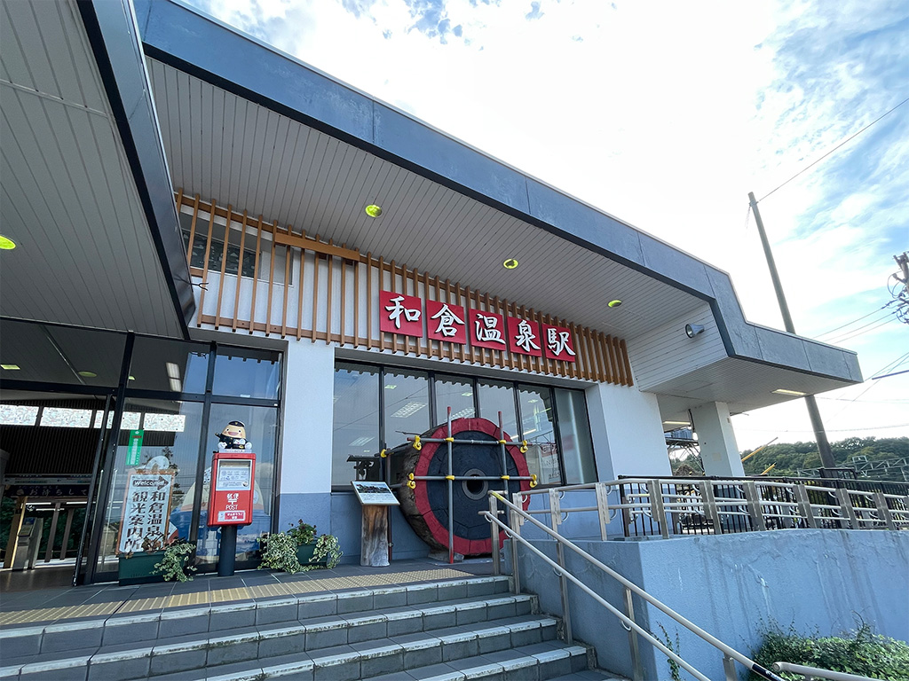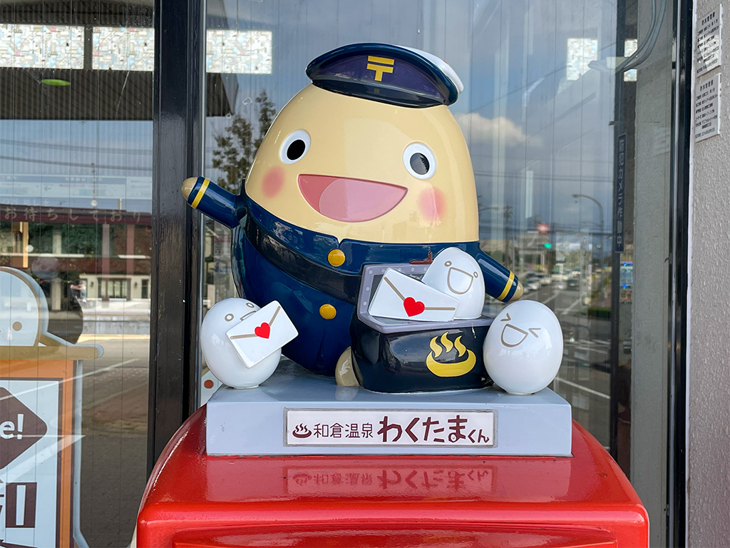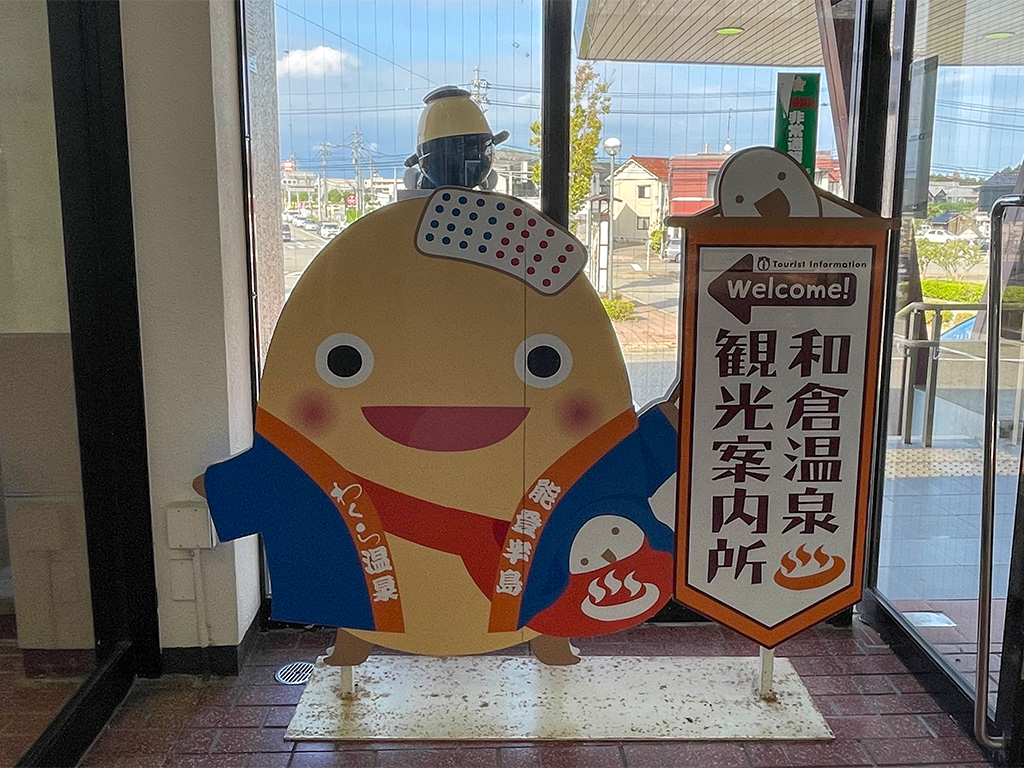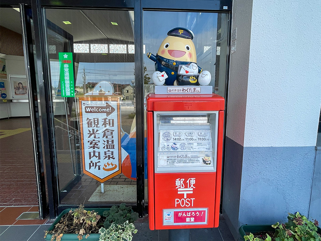 和倉温泉駅では、和倉温泉のゆるキャラ「わくたまくん」がお出迎えしてくれます!
