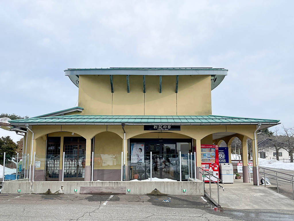 「やなぎだ植物園(柳田植物公園)」に掲示されているプロフィギュアスケーター・羽生結弦選手の石川県応援企画ポスターは、公園入り口すぐにあるショップ&カフェ「お花の日」にあります