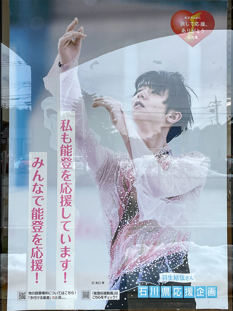 パネルやポスターにはQRコードが付いていて、現地にて二次元コードを読み取ると、羽生選手が能登や石川への旅行・宿泊を呼びかける「能登応援動画」の限定メッセージが視聴できます